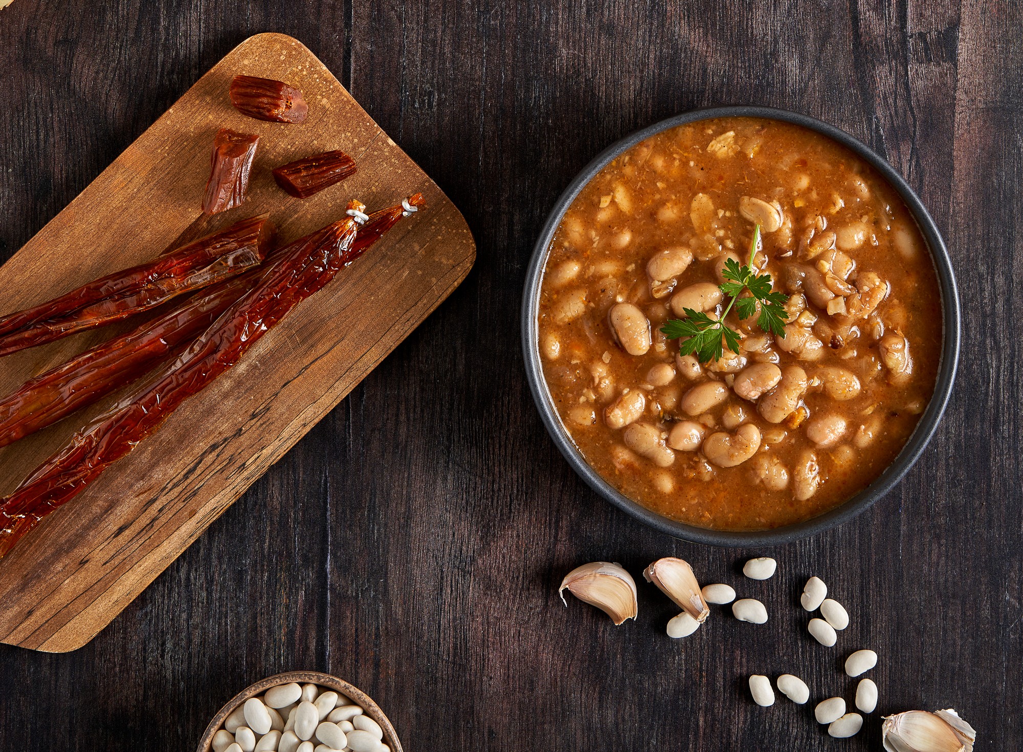 Disfruta de la primera fabada vegetal del mercado con un reconocido sabor a la «fabada» tradicional de toda la vida que le confiere nuestro embutido de calabaza, el calabizo y la morcilla vegana elaborada específicamente para esta receta.